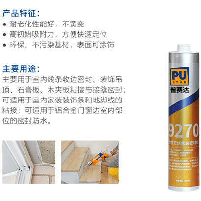 生活是屬于自己的,我們都在努力的營造安全、環(huán)保、美好的家庭環(huán)境,普賽達(dá)進(jìn)行了大量的資金投入和實(shí)驗(yàn),系列化的推出了家裝產(chǎn)品及配套服務(wù),從安全、環(huán)保、和可操作性等方面進(jìn)行了大量的驗(yàn)證,應(yīng)用包含瓷磚、木地板、廚衛(wèi)、家具、大理石等等粘接、密封、防水、防霉需求。產(chǎn)品與細(xì)微處,盡顯品質(zhì)生活。